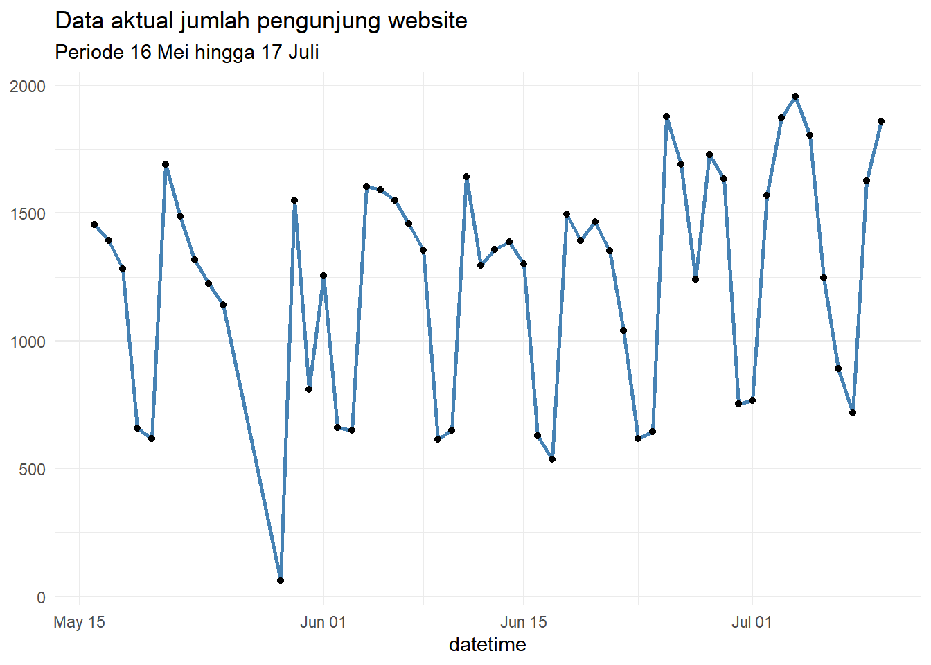 Dan kita juga mempunyai data aktual untuk periode tersebut. Kita perhatikan terjadi peningkatan total pengunjung website.