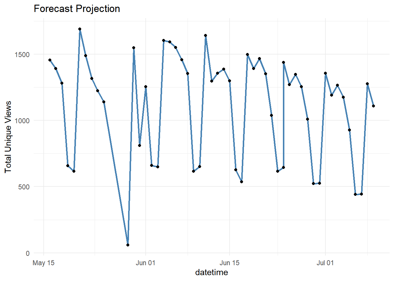 Kita pilih beberapa kolom yang menjadi fokus analisis ini, yaitu datetime (harian) dan unique views yang berisi informasi berapa banyak orang yang mengunjungi halaman website tersebut.