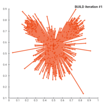 Langkah tersebut akan terus diulang sampai nantinya S > 0, yang berarti tidak adanya pergerakan lagi dari Medoid yang dipilih sebagai titik tengah. Dari titik Medoids yang paling optimum itu, akan dicari lagi objek yang menyerupai dari karakteristik Medoids tersebut. Supaya lebih terbayang dengan cara kerja dari metode PAM, kita bisa melihat visualisasi di bawah ini.