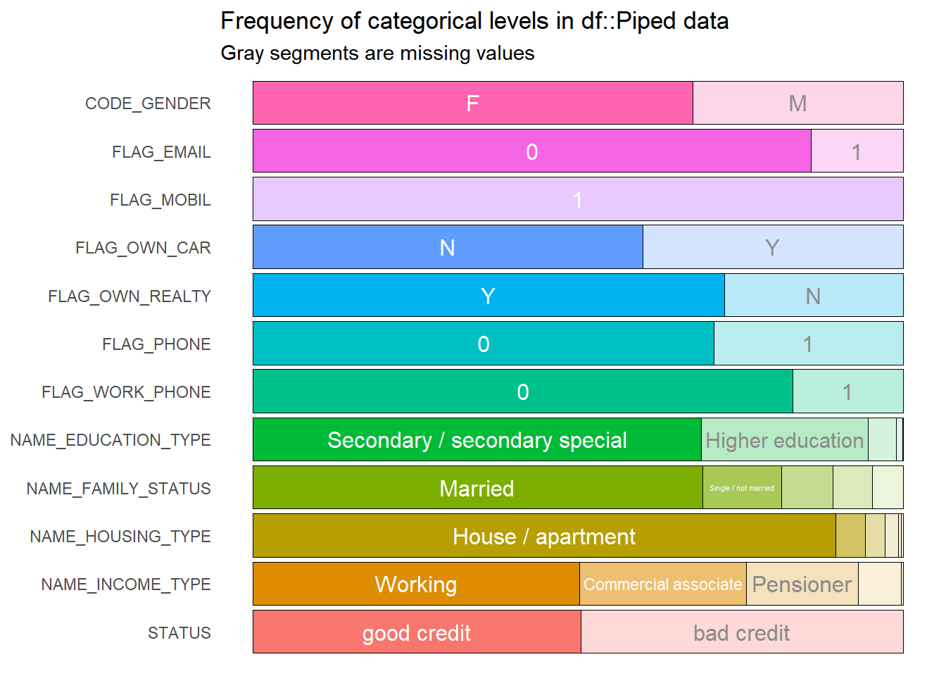 mutate(STATUS = as.factor(ifelse(STATUS == "C", "good credit", "bad credit"))) %>%