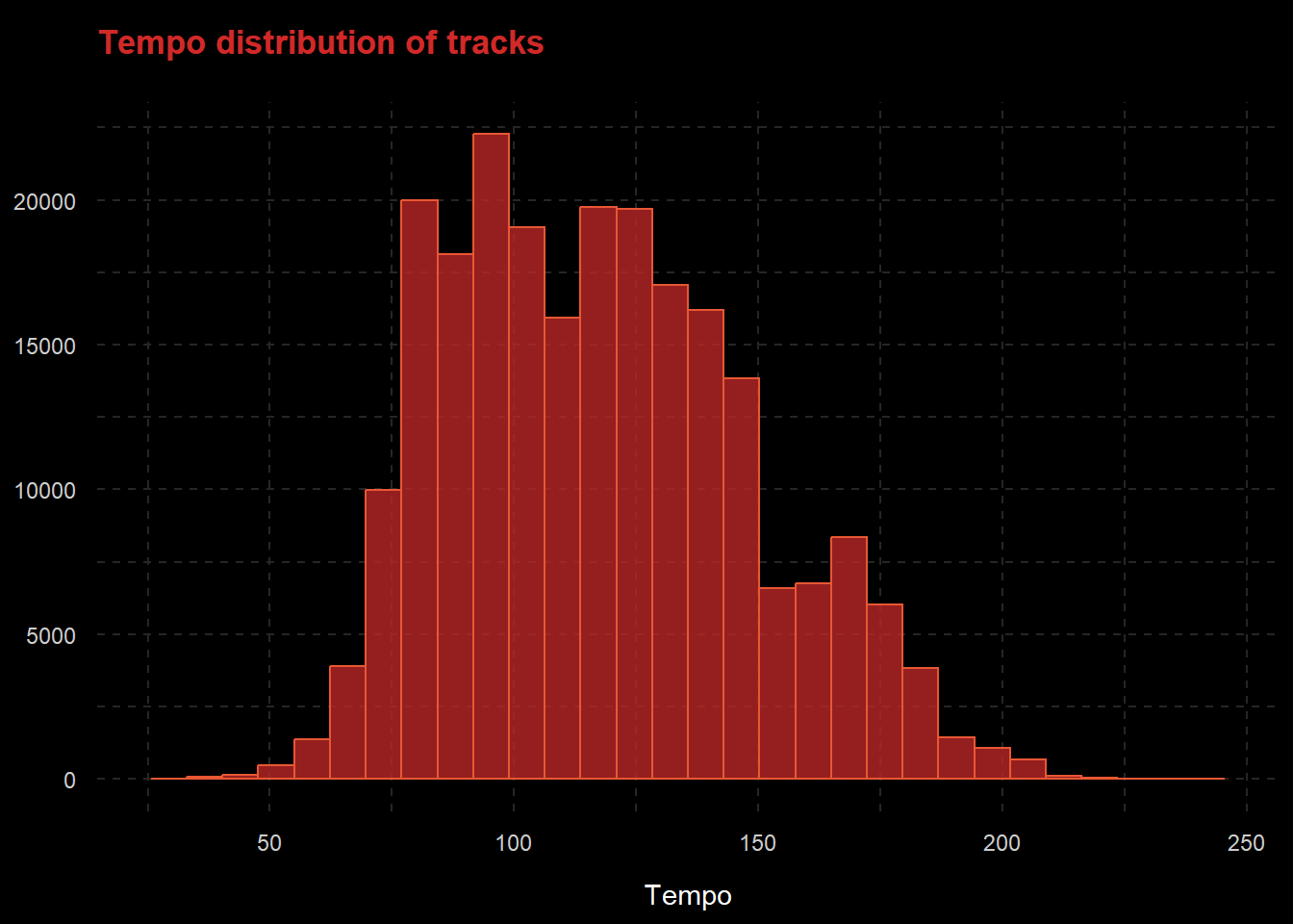 Jika kita lihat dari tempo dan time_signature pada suatu musik, semakin tinggi nilai tempo pada suatu musik bisa mengindikasikan bahwa musik tersebut memiliki nuansa senang maupun energetik. Apabila kita lihat berdasarkan time_signature yang memiliki tempo 4/4 mengindikasikan suatu musik yang memiliki tempo yang cepat.