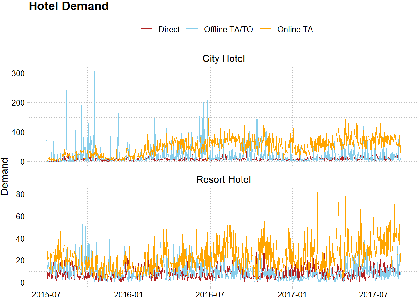labs(subtitle = "Resort Hotel, Offline TA/TO",