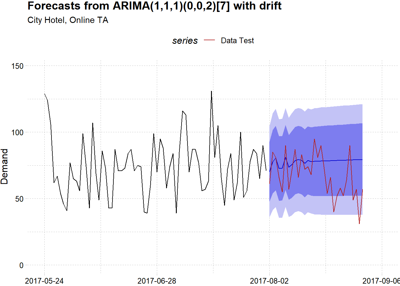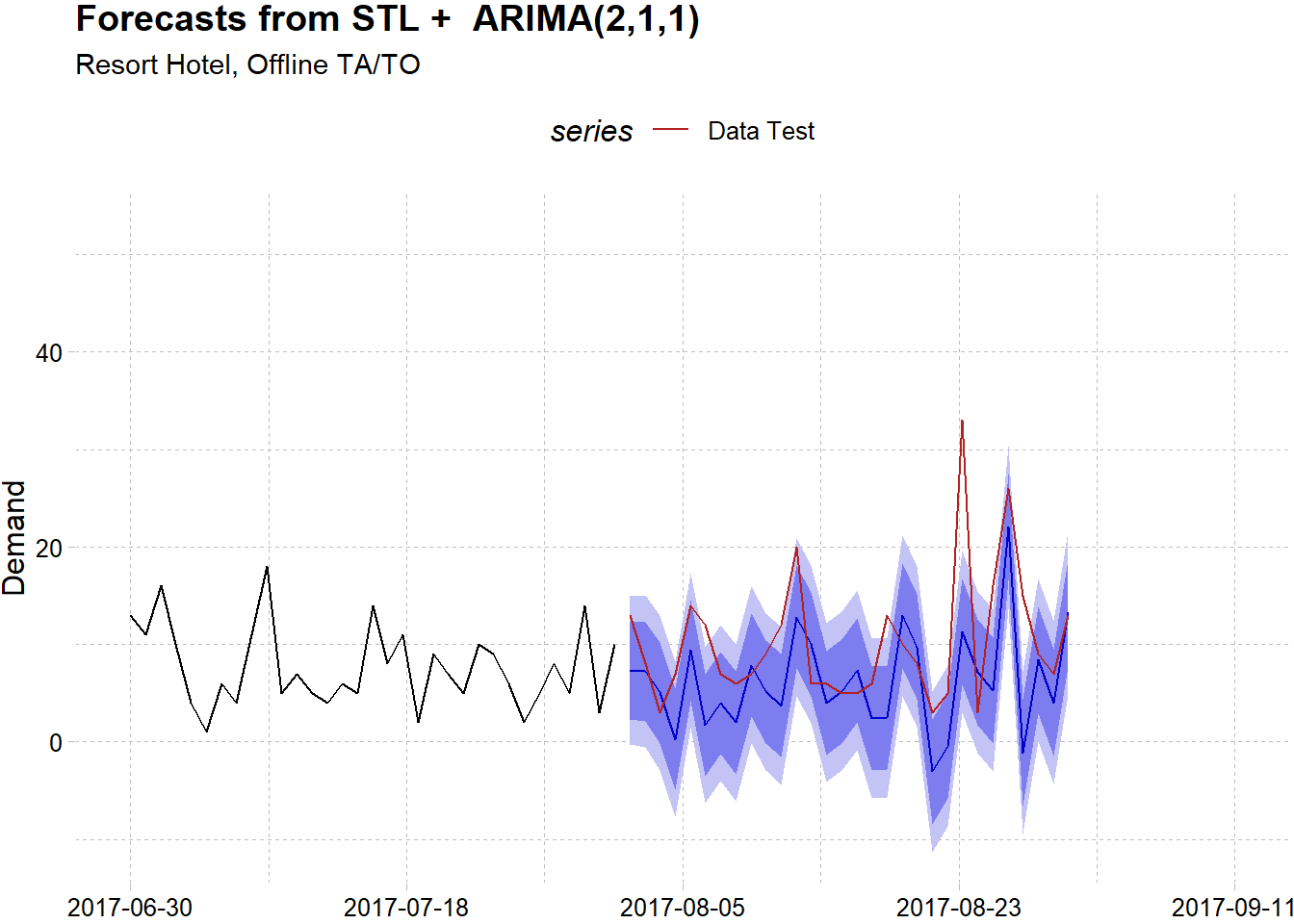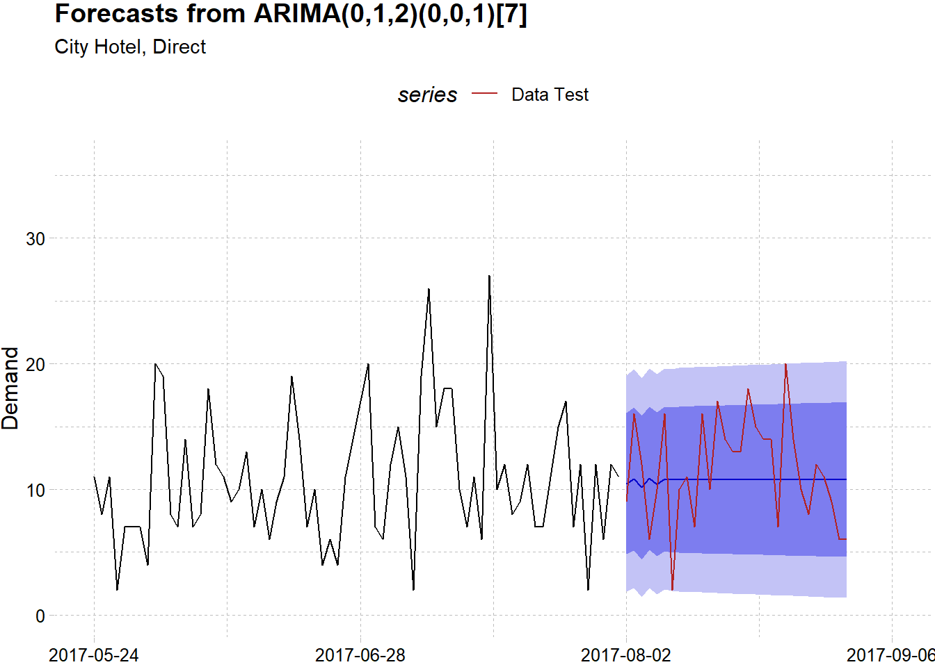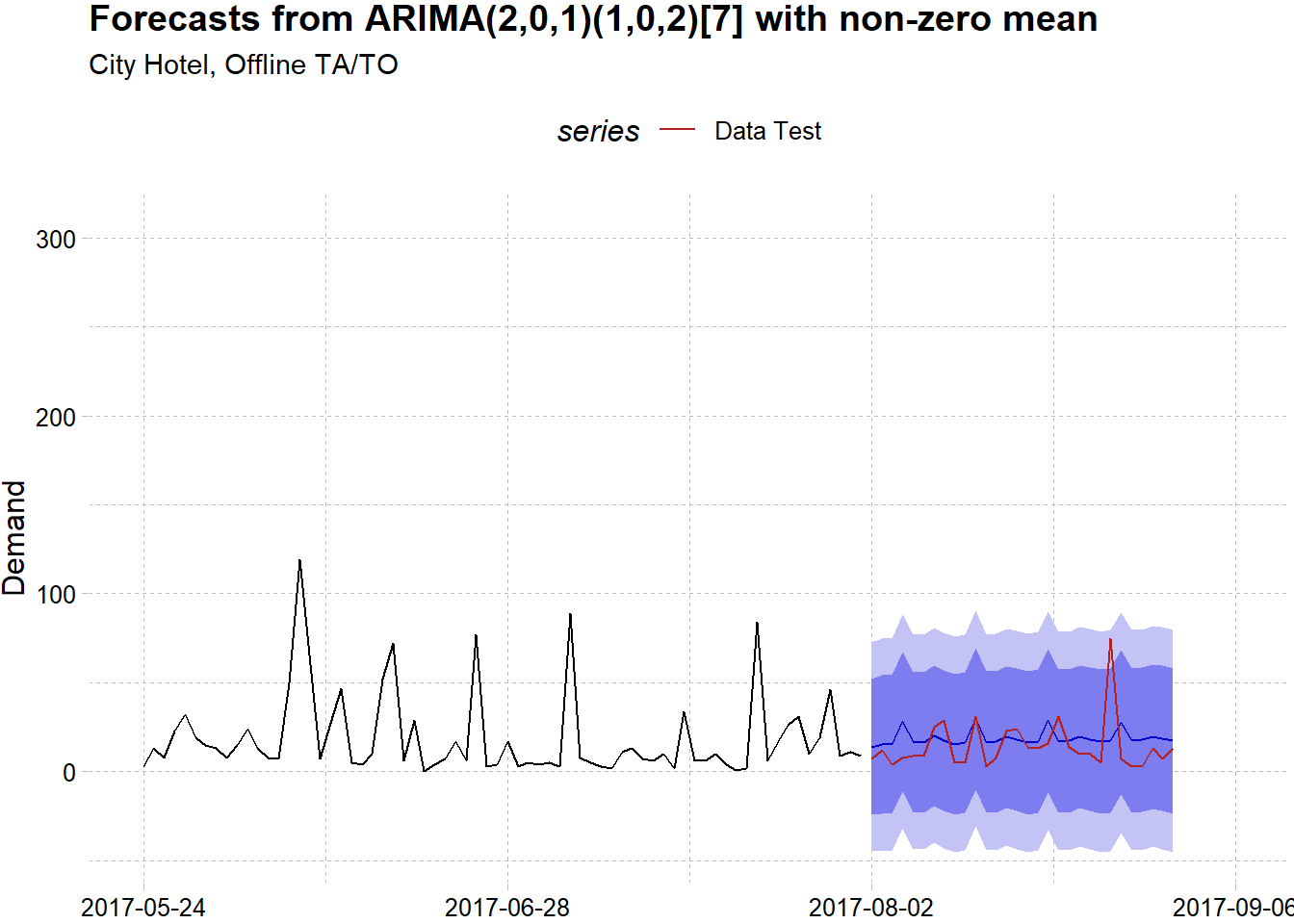 This article has illustrated how R and functional programming of purrr can help us to do flexible forecasting for multiple time series models. We have tried to do hotel demand forecasting using a real-world datasets with two years worth of data. We also have tried to analyze the series pattern for each hotel and segment and fit the best model for each one of them with a satisfying results. The next step perhaps is to enhance the model further either by using another time series model, incorporate predictor by the unused variables from the original dataset or transforming the data.