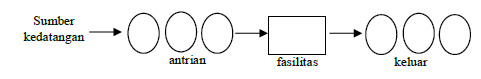 Sistem antrian ini merupakan sistem antrian yang memiliki satu jalur antrian atau satu server dan satu fase pelayanan.
