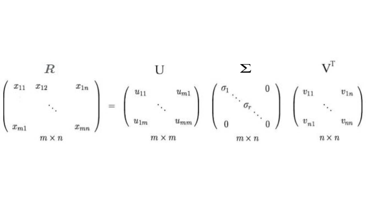 Singular Value Decomposition is one of type Matrix Factorization. SVD algorithm will decomposes a matrix R into the best lower rank approximation of the original matrix R. Matematically SVD produce by the formula below :